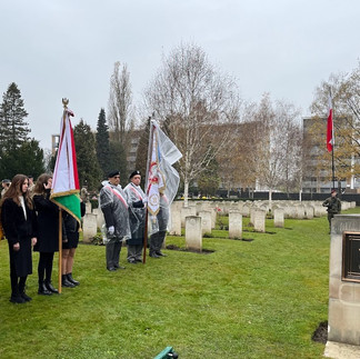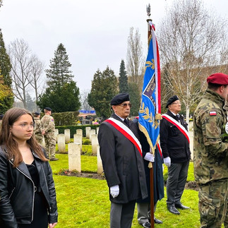 Niewiele później, bo o godzinie 10.40, na cmentarzu żołnierzy wspólnoty brytyjskiej przy ulicy Prandoty odbył się apel pamięci, przygotowany i przeprowadzony przez Ambasadę Brytyjską. Tutaj wystąpiliśmy ze sztandarem i w poszerzonym składzie.